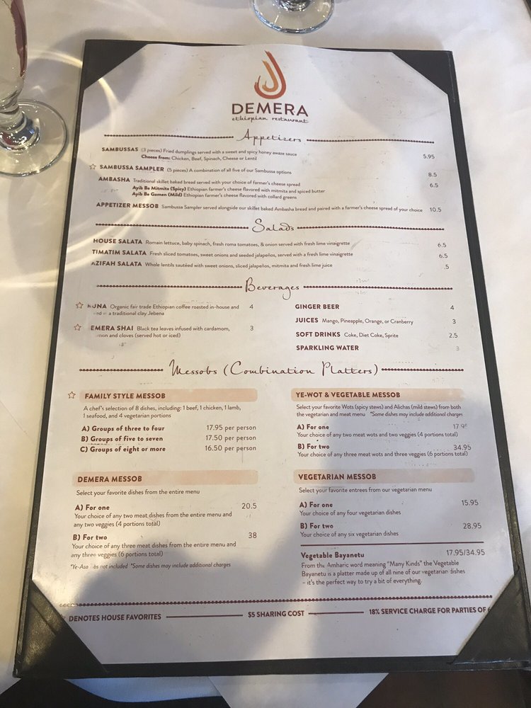 Welcome to Demera Ethiopian Restaurant, a hidden gem in Chicago that offers an authentic taste of Ethiopia. The menu is a vibrant tapestry of flavors, perfect for sharing and celebrating togetherness. Start your journey with the Sambussa Sampler, featuring crispy fried dumplings filled with delightful ingredients. The chef's selection messob is a must-try, showcasing tender meats and savory vegetable stews served atop traditional injera, allowing diners to blend both textures and flavors.